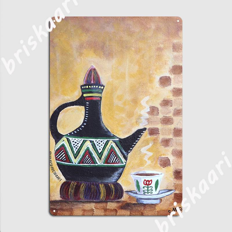 Habesha Jebena And Finjaan Traditional East African Coffee Painting Poster Metal Plaque Mural Painting Party Printing