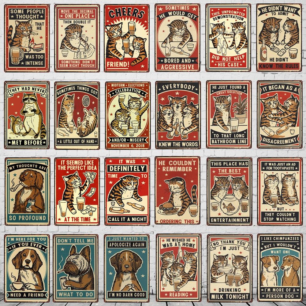 Cat And Dog Diet Funny Picture Metal Tin Signs Plaque Vintage Wall Bar Home Art Pet Shop Decor Customizable 30X20CM DU-7090A