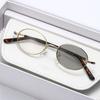 Retro Small Oval Photochromic Blue Light Blocking Myopia Glasses Metal Frame Blue Light Blocking Near Sight Glasses 0 To -4.0