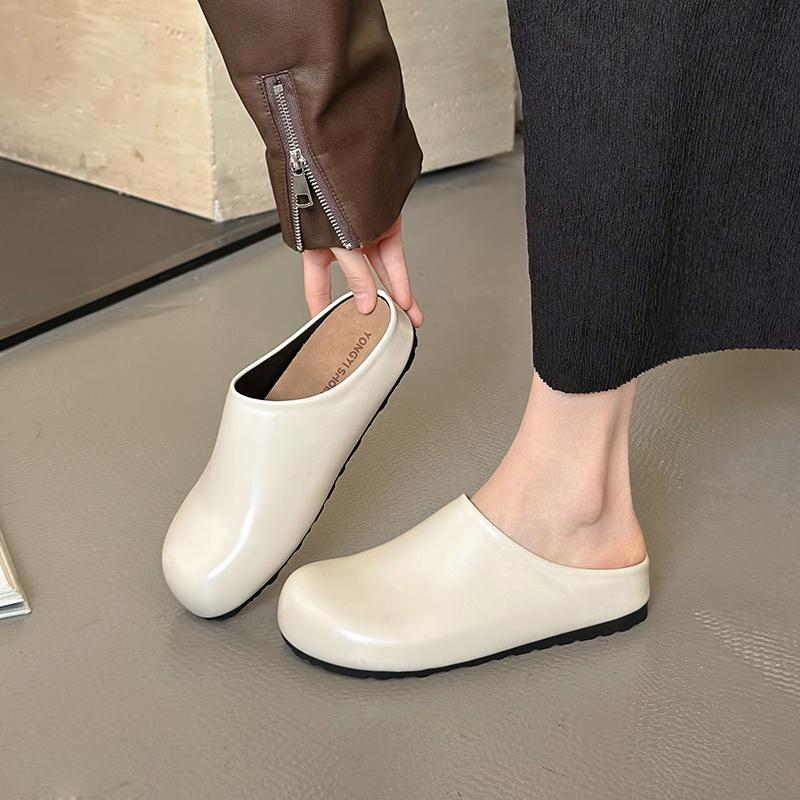 Fashion New Women's Slippers Closed Toe Round Toe Suede Sandals Autumn New Retro Solid Color Flat Bottom Women's Shoes