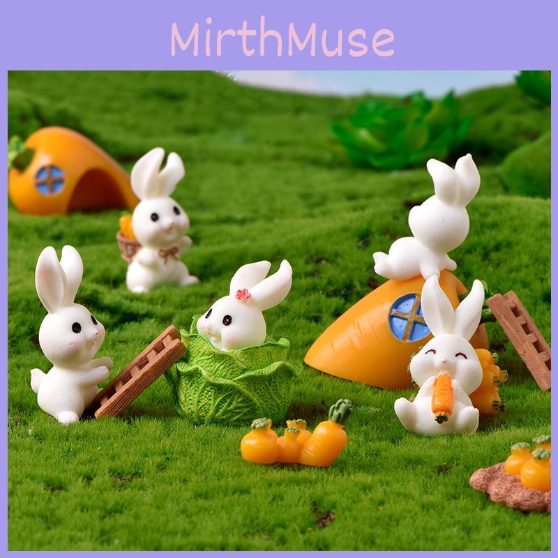 Choose from a variety of colorful options, including miniature radishes, carrot houses, wooden fences, ladders, and more. Each item is carefully crafted to resemble different rabbit poses and activities, such as eating carrots, lounging, or carrying baskets.
