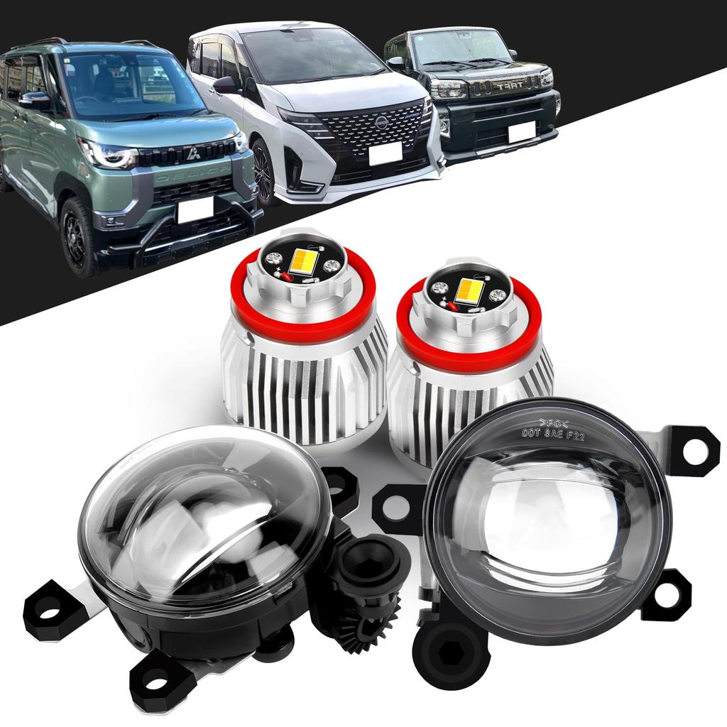 ■Brighter than the factory unit. SINMAIT's uniquely designed projector lens concentrates light, fully utilizing its energy, creating a brighter field of view. Accurate coverage and uniform illumination as fog lights, with a modern feel and perfect light distribution. ■Complies with new vehicle inspection standards. The LED bulb's special light distribution design creates a clear cut line. (When using our L1B Super Bright Bulb) ■Compatible Units: 1. For vehicles equipped with factory LED fog lights. 2. For factory fog unit part numbers: Nissan [L] 26155-8990E [R] 26150-8990E / Mitsubishi [L] 8321A821 [R] 8321A822. Compatible models include: Serena C28, Caravan 3rd generation NV350/E26, Sakura B6AW, Dayz BR06, Lux B44A, Aria FE0, Delica Mini, ek Cross EV B5AW, Taft LA900S/LA910S, Tanto Custom LA650S/LA660S, Hijet Truck S500P/S510P, Chiffon Custom LA650F/LA660F, N-BOX JF5/6, ZR-V RZ series, etc. *For other compatible vehicle information, please refer to the "Product Description" section.