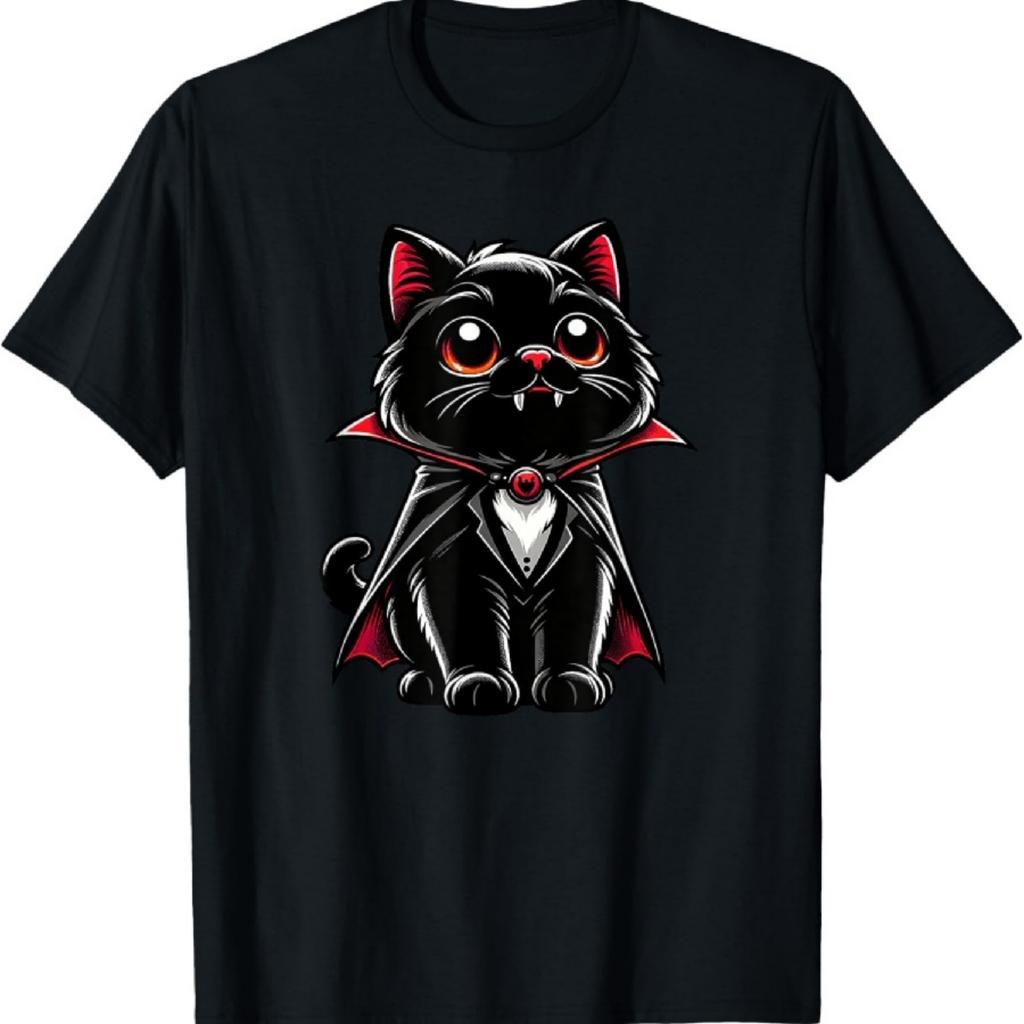 Black Cat Vampire Dracula Halloween Funny Boys Girls Kids T-Shirt