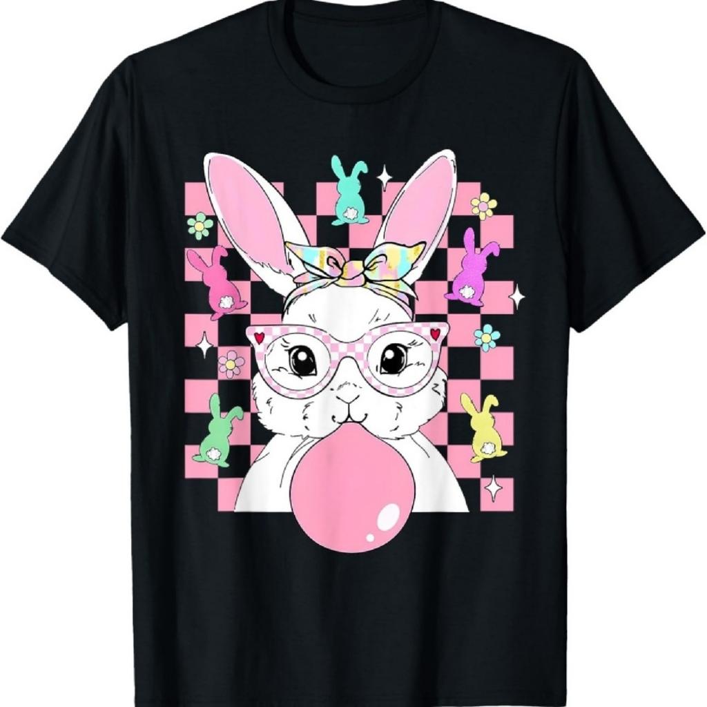 Bunny Bubble Candy Gum Glasses Easter Day Checkered Rabbit T-Shirt