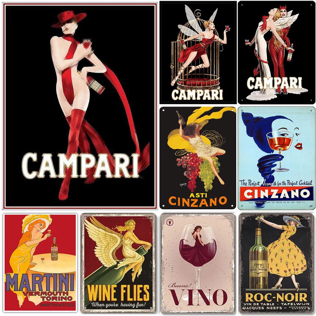 Campari Metal Tin Signs Martini Wall Decoration Plaque Vintage Art Poster Iron Painting for Man Cave Home Cafe Garden Club Ba