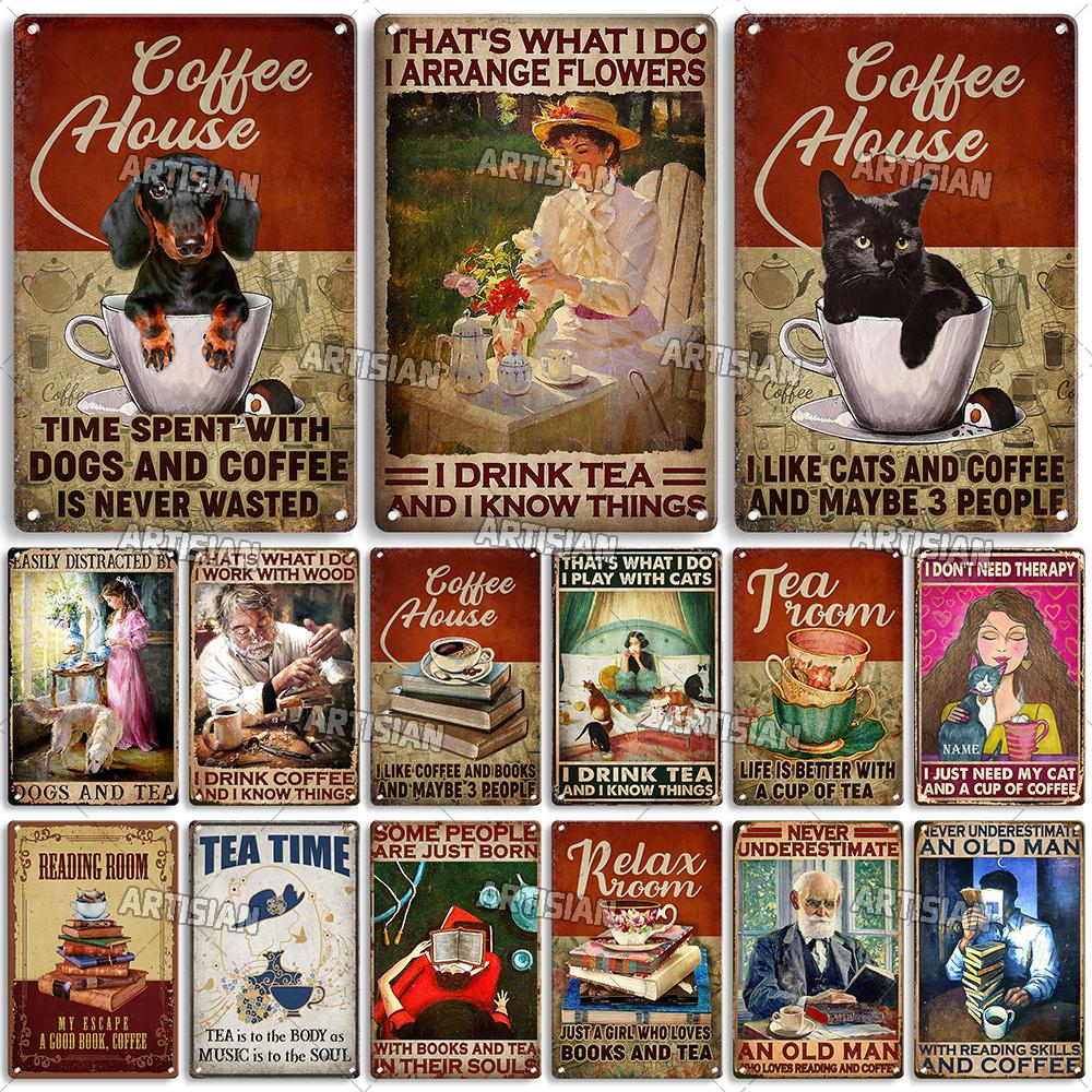 Artisian Coffee Metal Plaque Cute Animal Tin Sign Drinking Funny Decorative Plate Wall Decor Garage Bar Pub Club Hotel Cafe