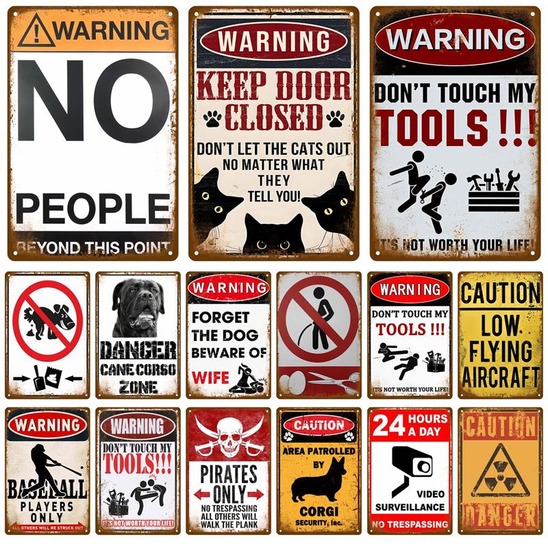 Plaque Tin Sign Plate Home Wall Decor For Bar Club Man Cave Art Warning Metal Sign Vintage Danger Beware Painting Poster Gift