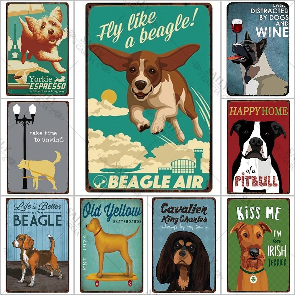 Dog Rules Metal Print Plates Lovely Bulldog Boxer Beagle Great Dane Metal Tin Sign Poster Vintage Pub Bar Sign Man Cave Plaques