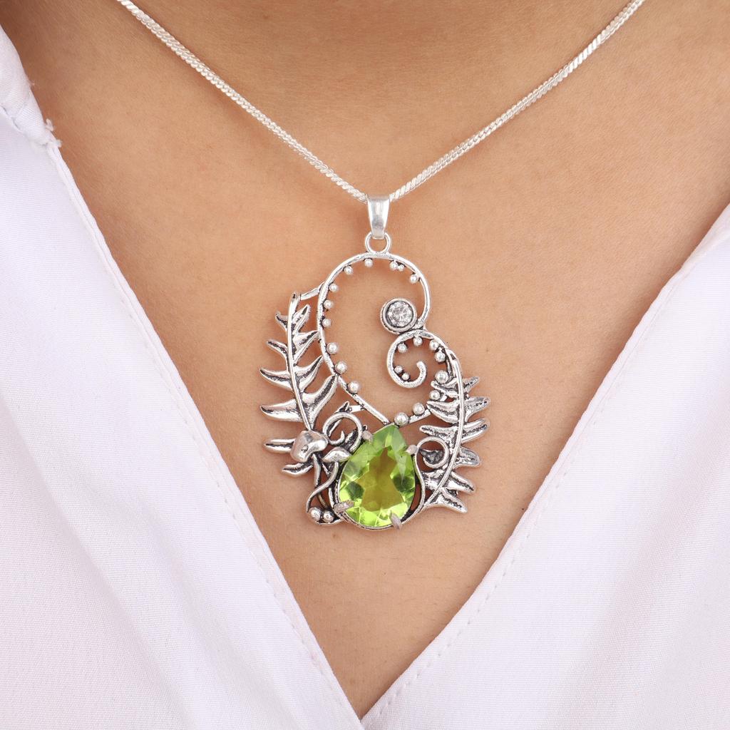 Peridot Gemstone Silver Partywear Pendant, 925 Sterling Silver Women Jewelry, August Birth-Stone Gift CP-42-1
