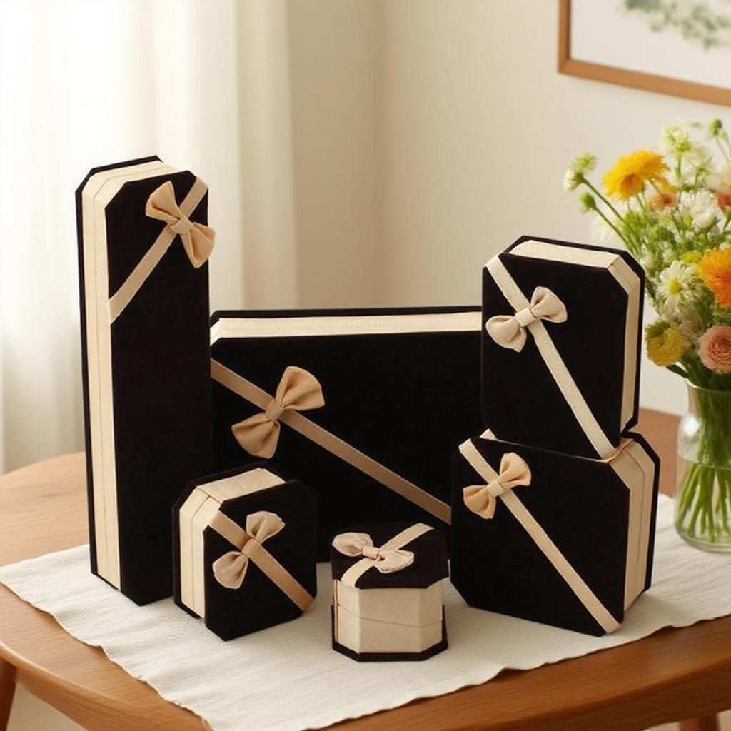 Velvet Display Jewelry Gift Box Jewelry Packing Case For Rings Bracelets Necklaces Sets Exquisite Bow Octagon Jewelry Box