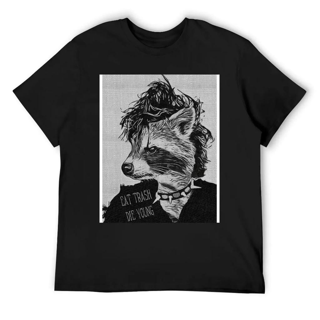 Punk Rock Raccoon T-Shirt Man Clothes Anime Stuff for a Boy Men's T Shirts