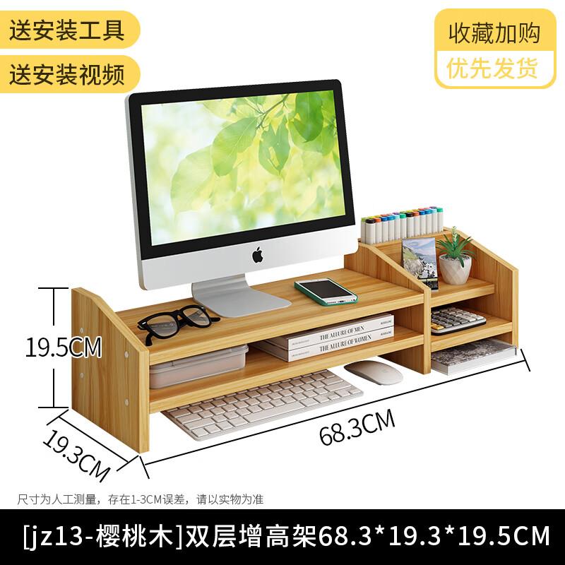 Cherry Wood Monitor Riser with Storage Cabinet and Pen Holder