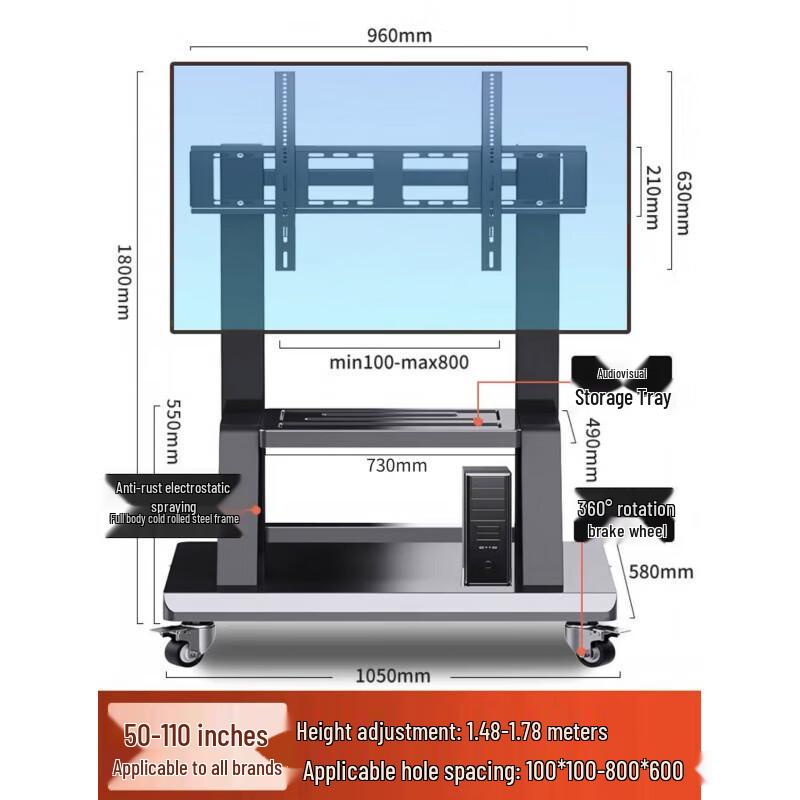 Heavy-Duty Mobile TV Stand with Rotation and Height Adjustment