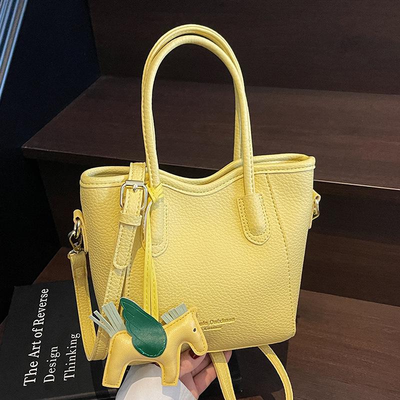 Stylish and Simple Style Lychee Pattern Texture Portable Bucket Bag Casual Commuting Versatile Solid Color Messenger Women's Bag
