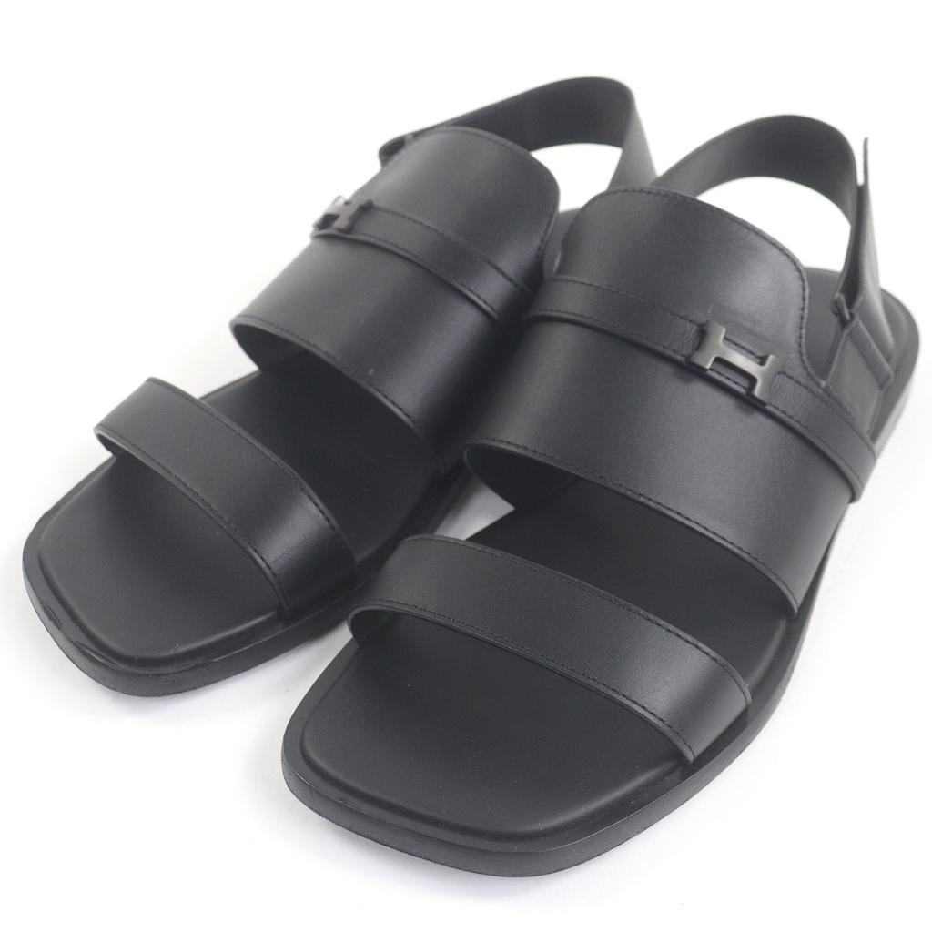 Very Good HERMES Sandals Giacomo H Logo Metal Strap Black Leather Mens 43 Used