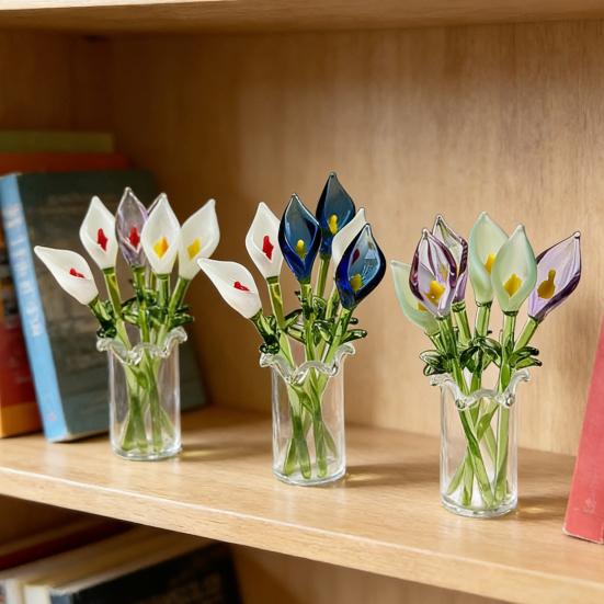 These mini glass flowers are crafted from thick, durable glass, ensuring long-lasting quality and sturdiness. Their vibrant colors bring a romantic and cheerful atmosphere to any space, making them ideal for home, office, or party decorations.