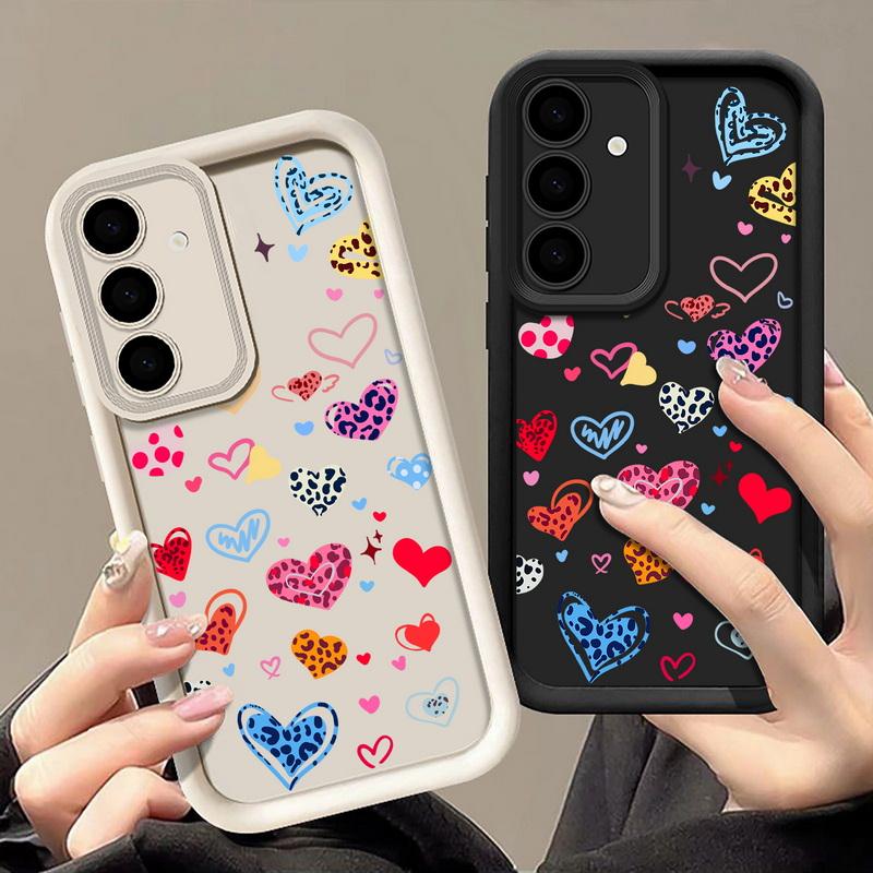 Leopard Print Love Heart Diamond Cover For Samsung Galaxy S25 Edge S24 FE S23 S22 Ultra Plus A17 A56 A36 A16 A15 A55 A54 A53 5G Soft Phone Cover