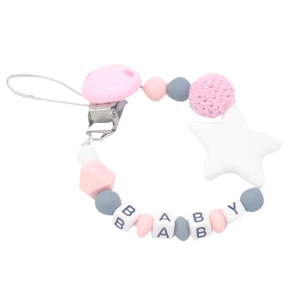Colorful Silicone Star Leters Bead Chain Clip Holder Baby Feeding