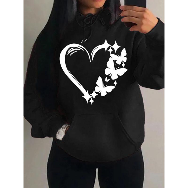 Combination Of Love And Butterfly Pattern Sweater Women Hip Hop Street Hoodies Trendy Pocket Clothes Vintage Multicolor Hoody