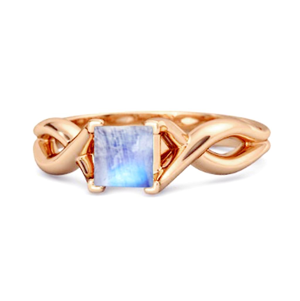 0.75 ct square Moonstone ring in sterling silver with a twisted vine band. Perfect for a soft, ethereal style.