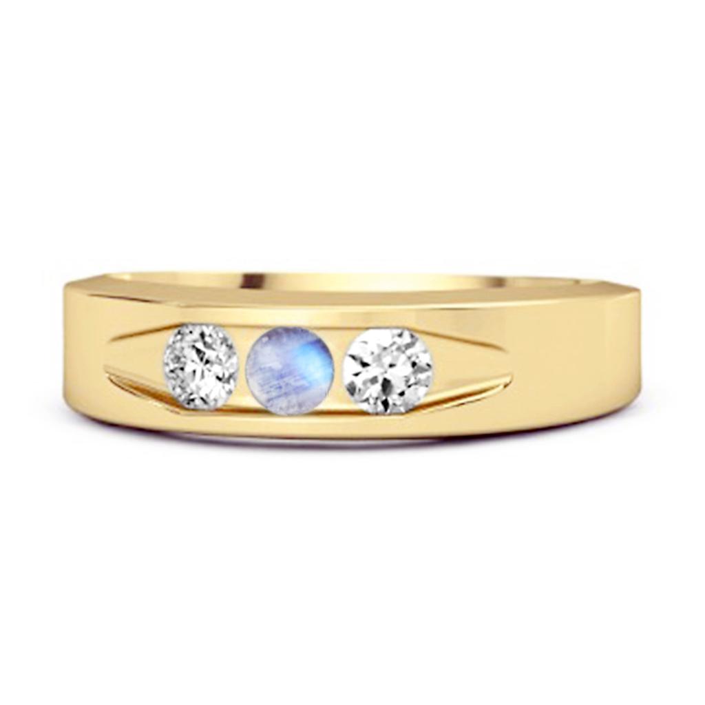 Moonstone Three Stone Band Ring - 925 Sterling Silver Gold Vermeil