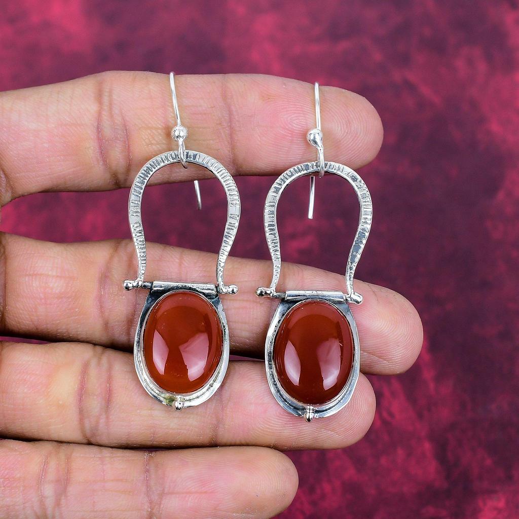 Carnelian 925 Solid Sterling Silver Earrings, Handmade Gemstone Earrings Jewelry, Gifts For Wife Brand New Earrings