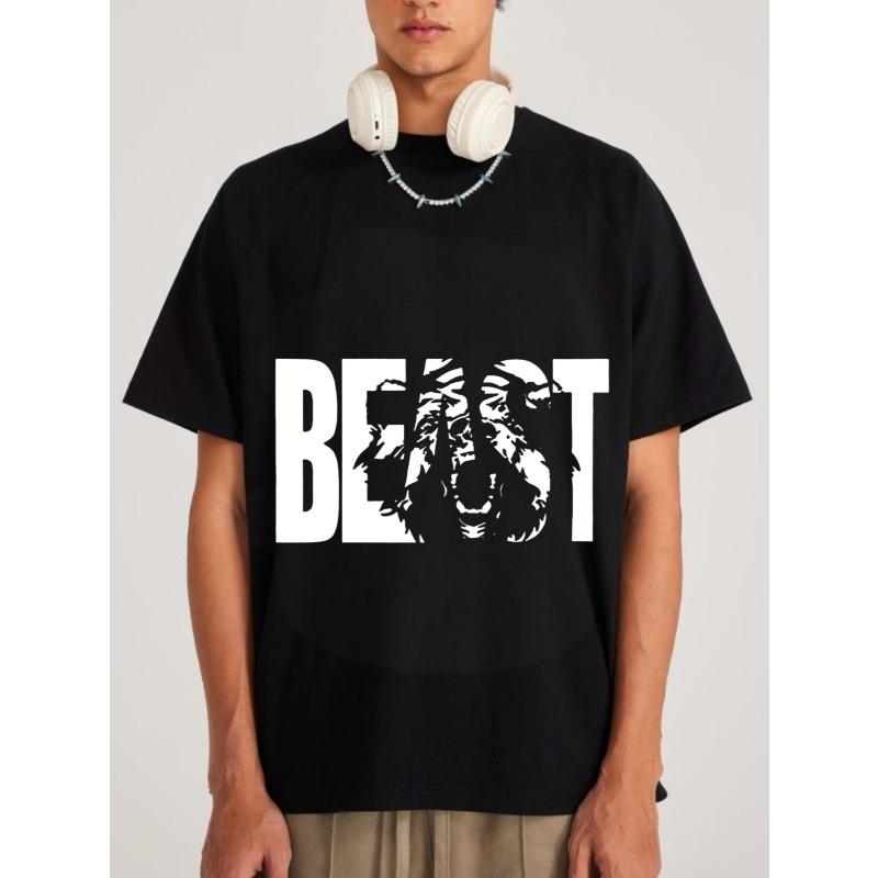 Men's Black T-Shirt Beast Tiger Print Graphic Tee Casual Streetwear Fashion Top for Daily Wear and Outings His-and-hers Matching Black T