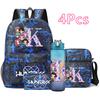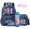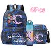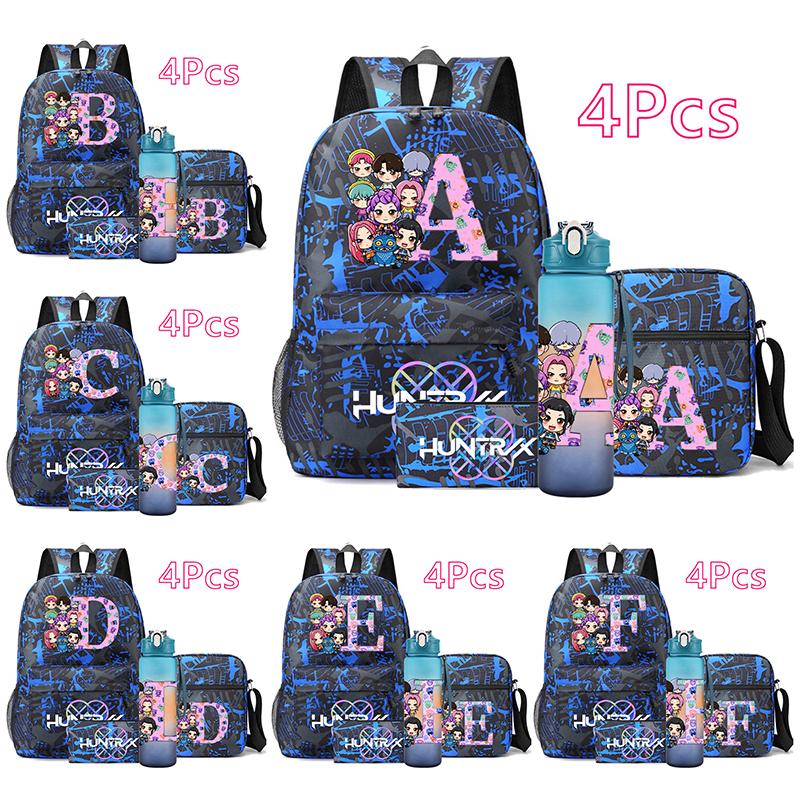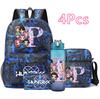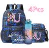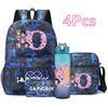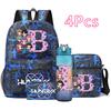 4Pcs/set 26 English Letter Printed Backpack Large Capacity Bookbag Shoulder Bag Case Bag with 750ml Water Bottler Boy Girl Waterproof SchoolBag Gift