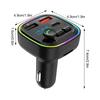 Car Bluetooth 5.0 FM Transmitter Handsfree Car Kit With PD Type-C Dual USB Fast Charger Ambient Light Cigarette Lighter