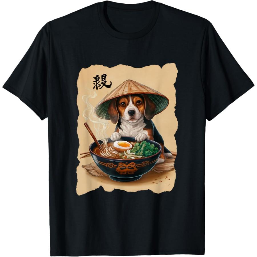 Men Woman Kawaii Eating Ramen Japanese Beagle T-Shirt