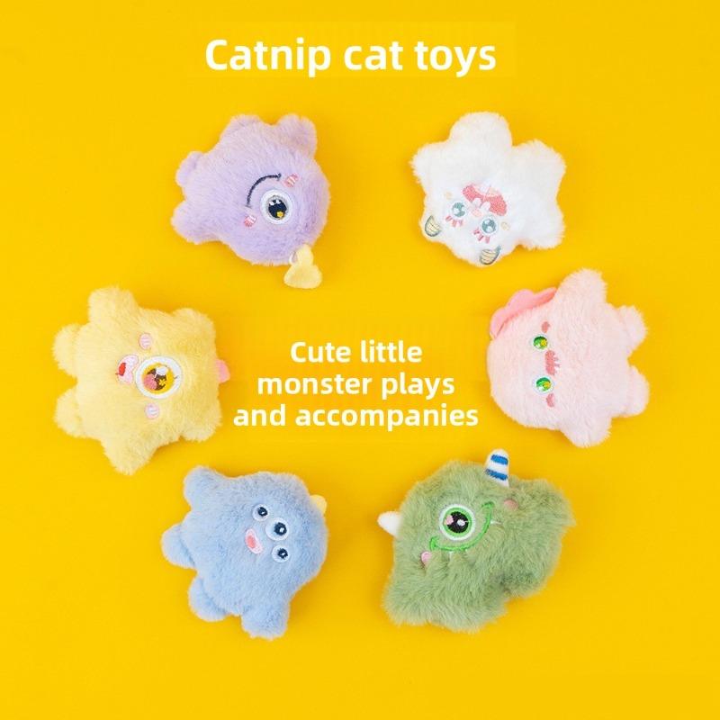 Cartoon Monster Cat, Mint Cat Toy, Teeth Grinding, Teeth Cleaning, Biting, Boring, Self-entertaining Kitten Plush Toy