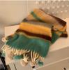 Winter Soft Warm Scarf Women Fashionable Plush Colorful Striped Scarf Versatile Mohair Couple Shawl Long Vintage Scarf Shawl
