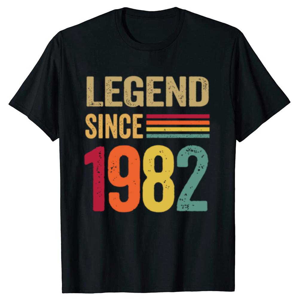 Funny 40 Year Old Gifts Legend Since 1982 Graphic 100% Cotton T-shirts Men Casual Tshirt Loose Oversized Streetwear T Shirt