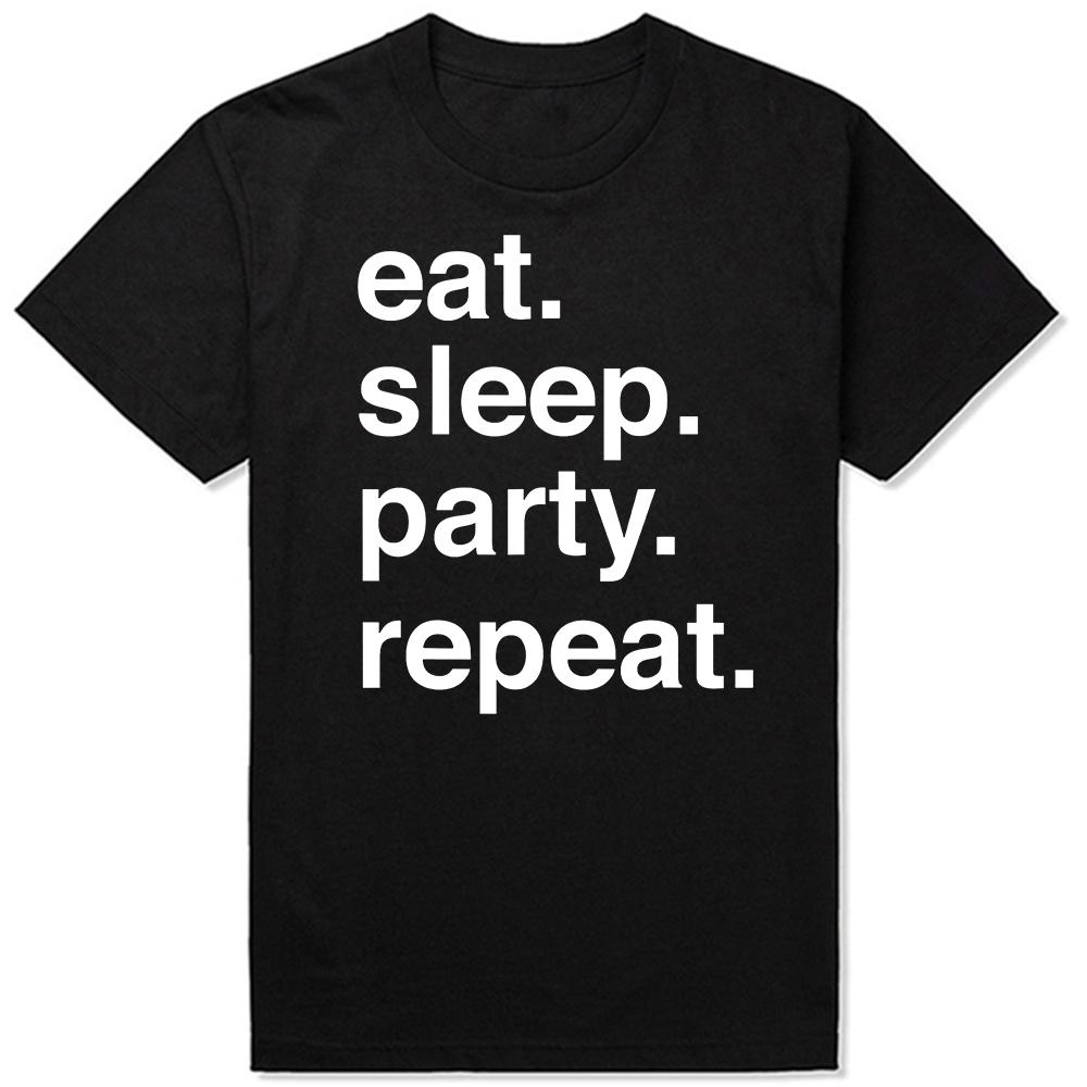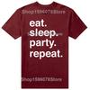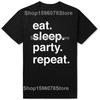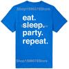 Funny Eat Sleep Party Repeat T Shirts Men Women Pure Cotton Humor Streetwear Tee Shirt Short Sleeve Unisex Loose Clothing