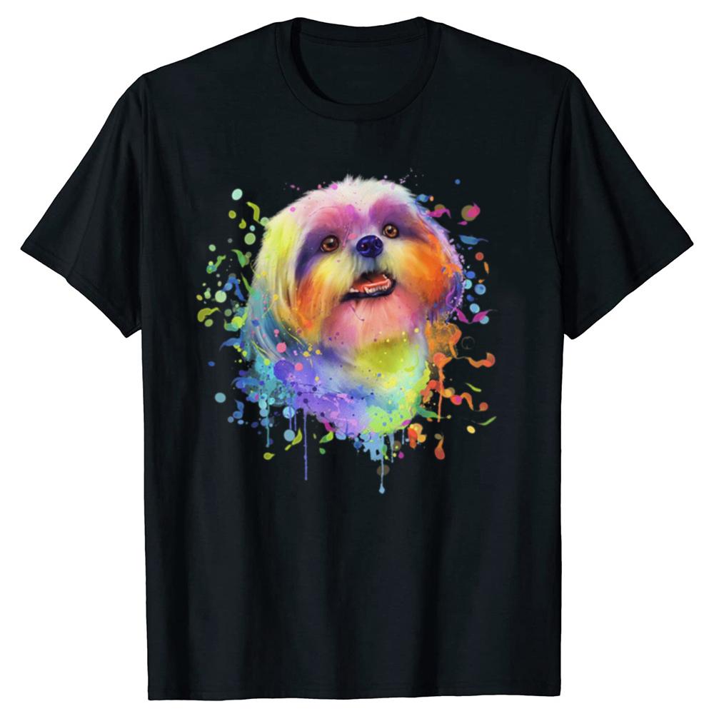New Men Colorful Splash Art Shih Tzu Shitzu Puppy Owner T Shirt Oversize Tee Shirt Casual Short Sleeve Vintage Couples T-Shirt
