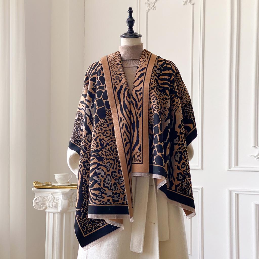 Winter Elegance Cashmere Two-Sided Scarf For Women Leopard Print Shawl Female Pashmina Luxury Poncho Thick Blanket Warm Bufanda