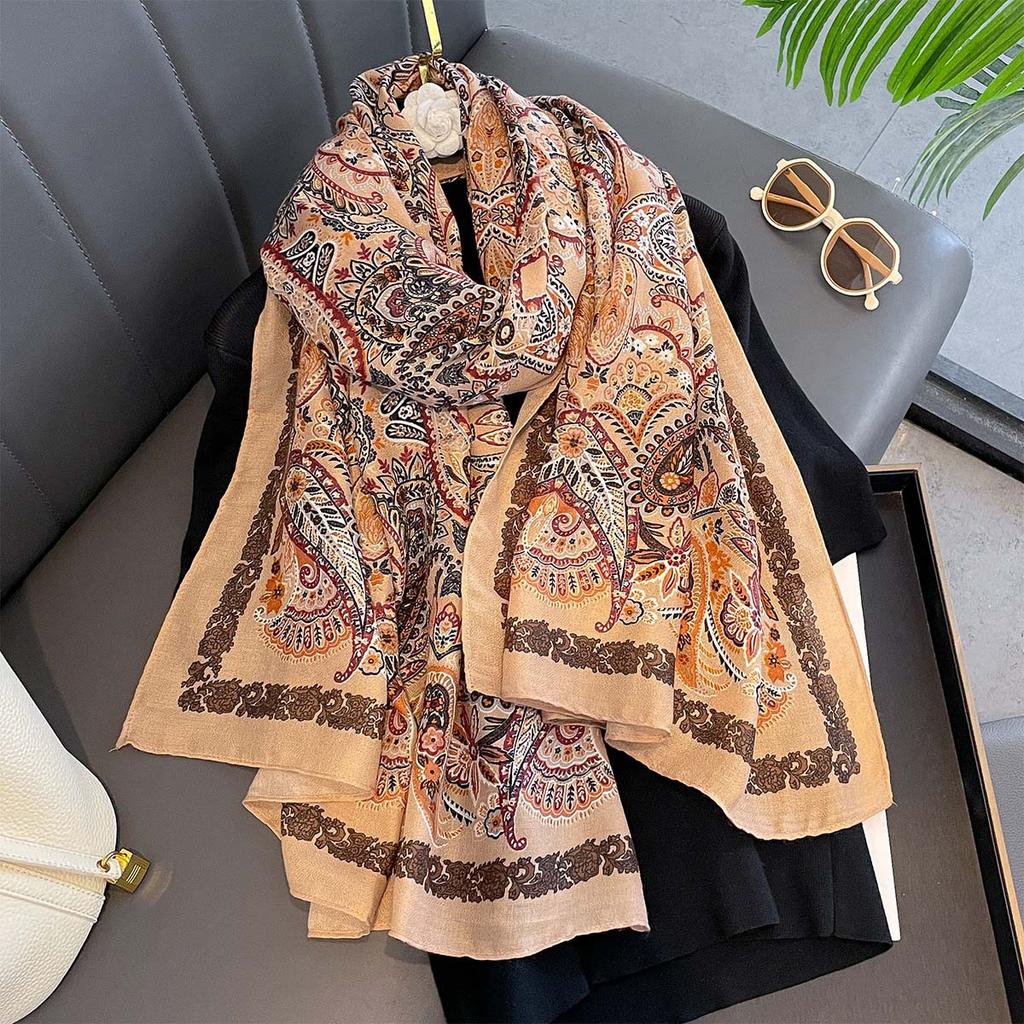 Women Paisley Flowers Thin Scarf Warm Elegant Cotton Linen Long Wrap Spring Autumn Sun Protection Scarves Hijab Bufandas Luxury