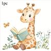 1pc Cartoon Animal Giraffe Reading Books Wall Decal Butterfly Flower Art Wall Sticker Bedroom Living Room Background Wall Decor