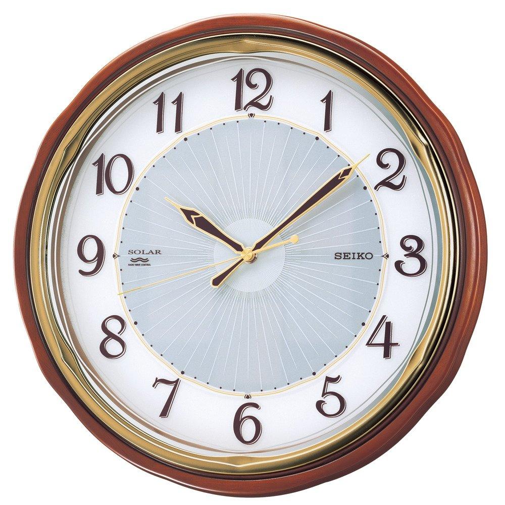 Seiko Clock Solar Plus Analog Wall Clock with Brown Wooden Frame SOLAR+ Radio-Controlled (SF221B)