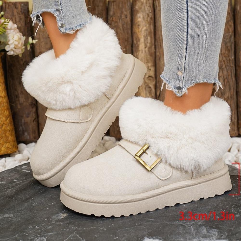 Metal Belt Buckle Fashion Snow Boots Women Winter Luxury Faux Fur Ankle Boots Warm Short Plush Non Slip Shoes Woman