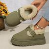Autumn Winter Women Plush Snow Boots Shallow Buckle Thick Bottom Warm Boots Big Size 43 Suede Fur Flat Platform Cotton Shoes