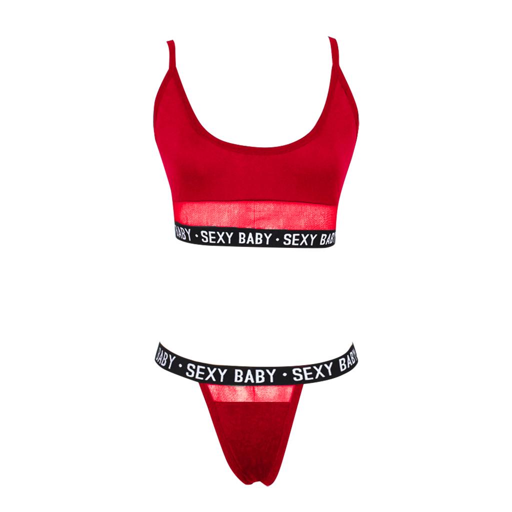 Fashion Women Letter Solid Patchwork Sexy Lingerie Underwear G-String Set