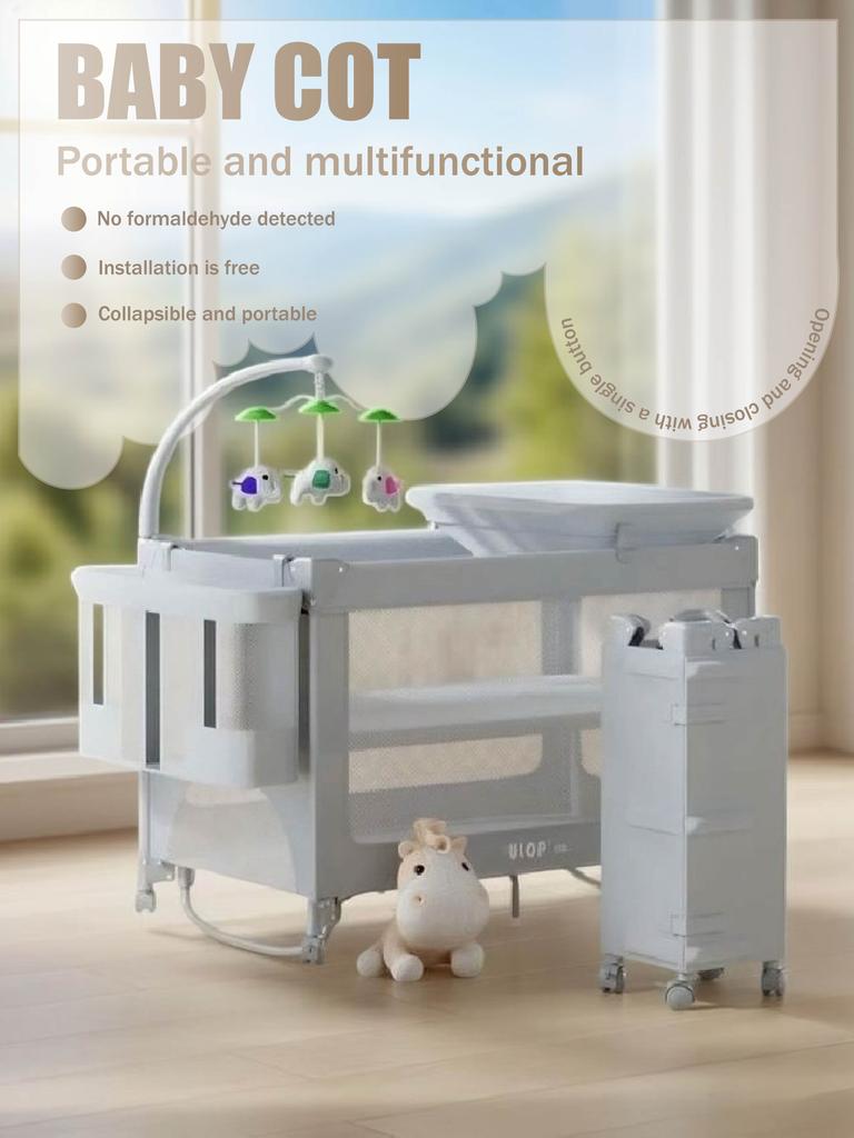 Portable Multifunctional Baby Cot – Collapsible No-Formaldehyde Newborn Bassinet with Mobile