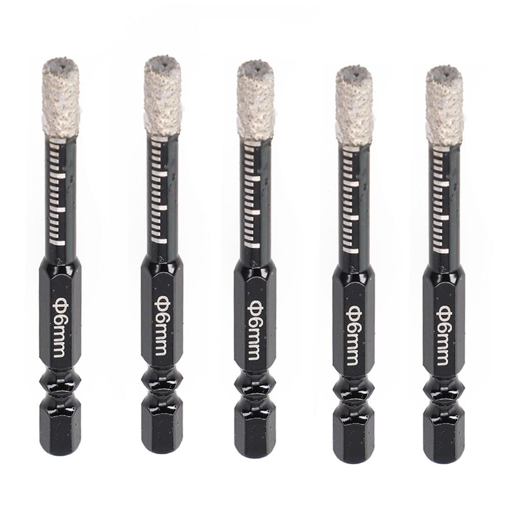 5pc 6mm/8mm Vaccum Brazed Emery Dry Drill Bit Hex Handle Hole Saw Cutter For Marble Granite Ceramic Glass Tile Stone Hole Open