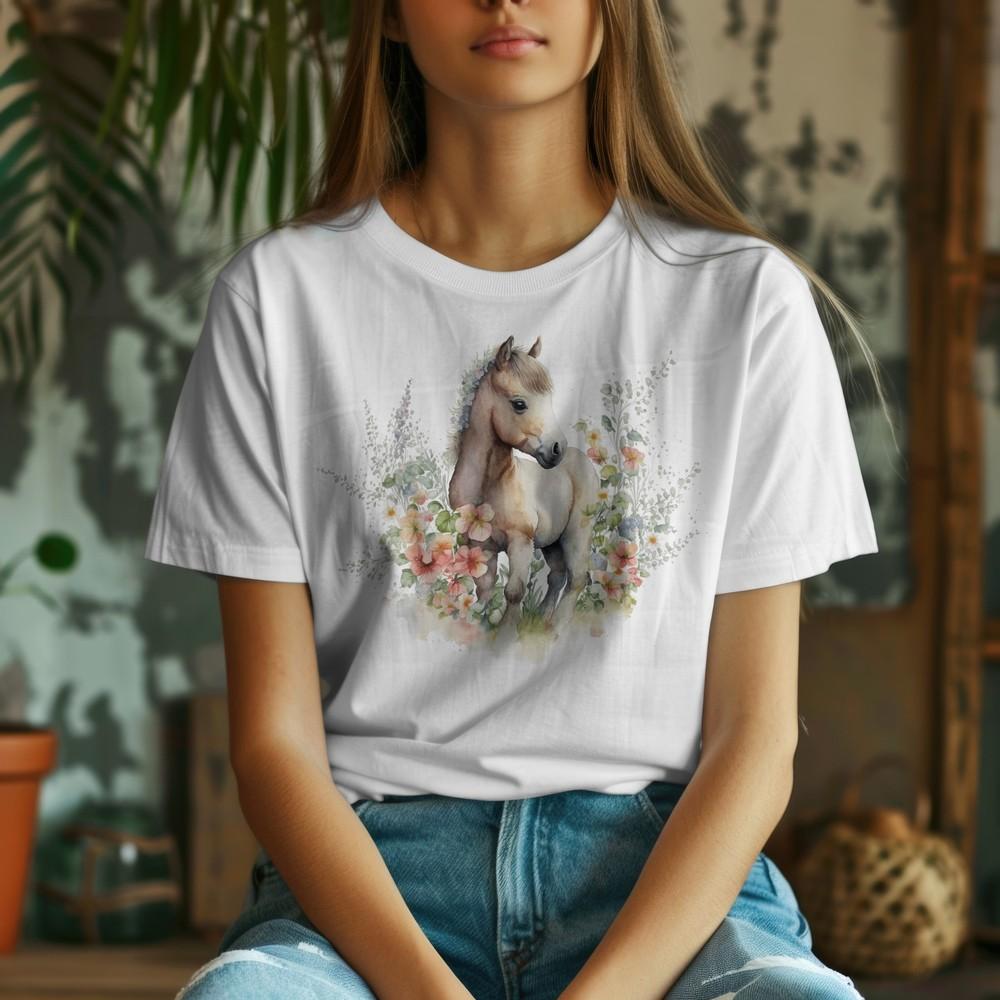 Floral Baby Horse Tee, Cute Horse T-Shirt, Flower Foal Shirt, Floral Pony Top