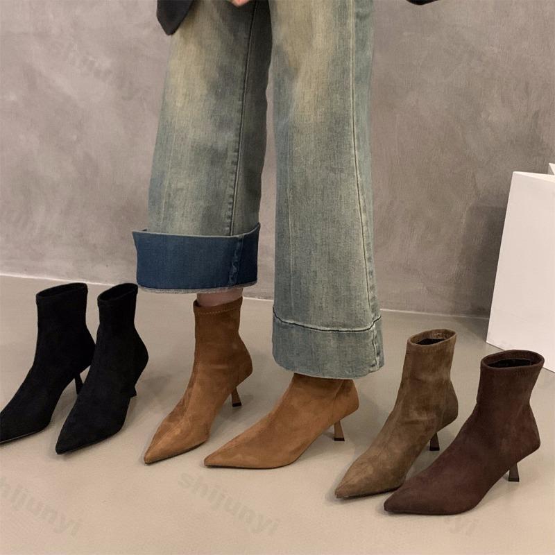 Women Ankle Boots Autumn Sexy Pointed Toe Fashion Vintage Elegant Party High Heel Short Boot Suede Leather De Mujer
