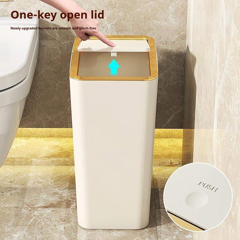 9.5L Nordic Trash Can with One-Touch Lid Bin Deodorant Waterproof Dustbin Kitchen Living Room Small Wastepaper Basket