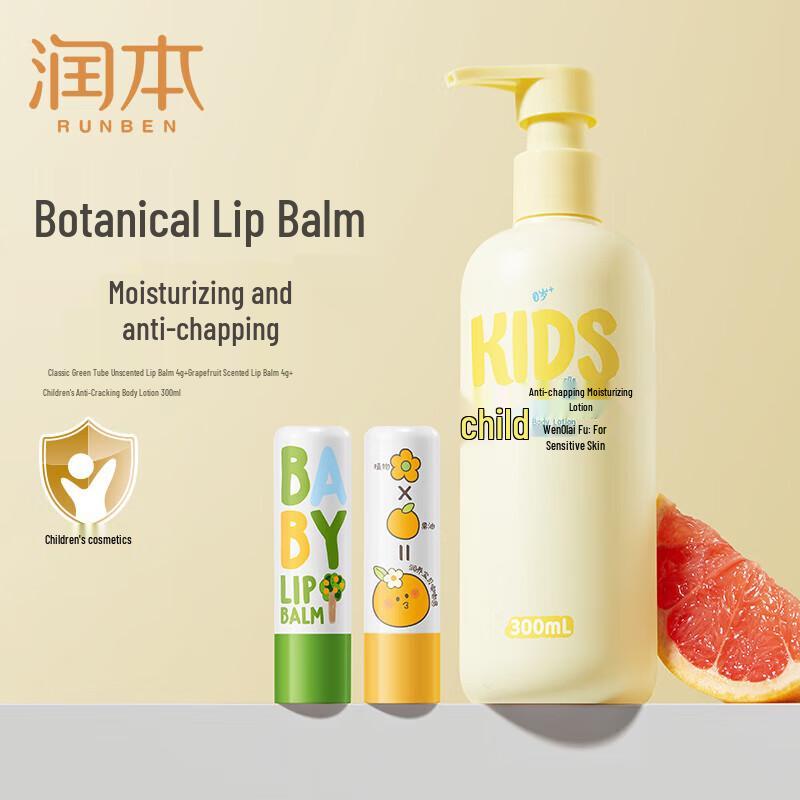 RUNBEN Kids Lip Balm & Body Lotion Set