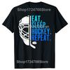 Eat Sleep Hockey Repeat Funny Boys Hockey Player Graphic T-shirts Men Fashion Casual Tshirt 100% Cotton Loose Oversized T Shirt