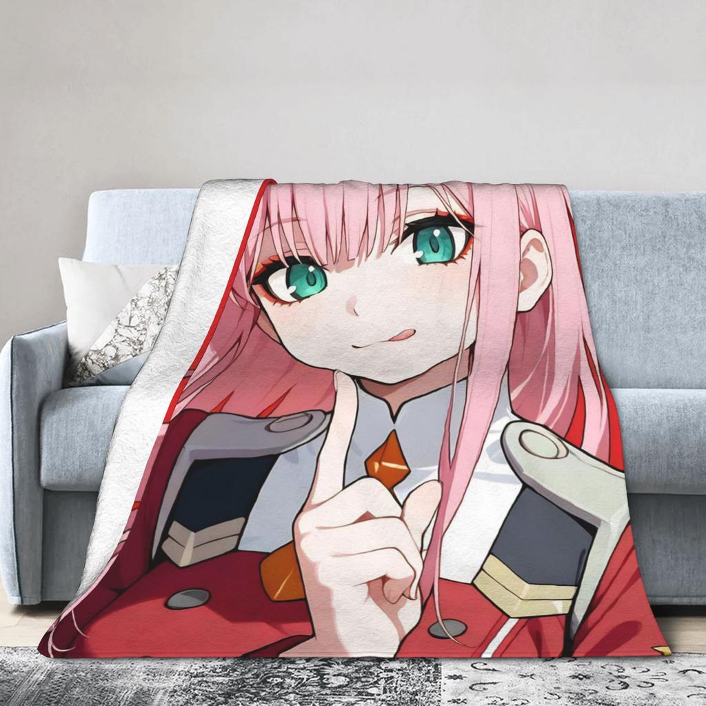 Zero Two 002 DARLING In The FRANXX Fuzzy Blankets Sexy Girl Creative Throw Blanket for Home 125*100cm Lightweight